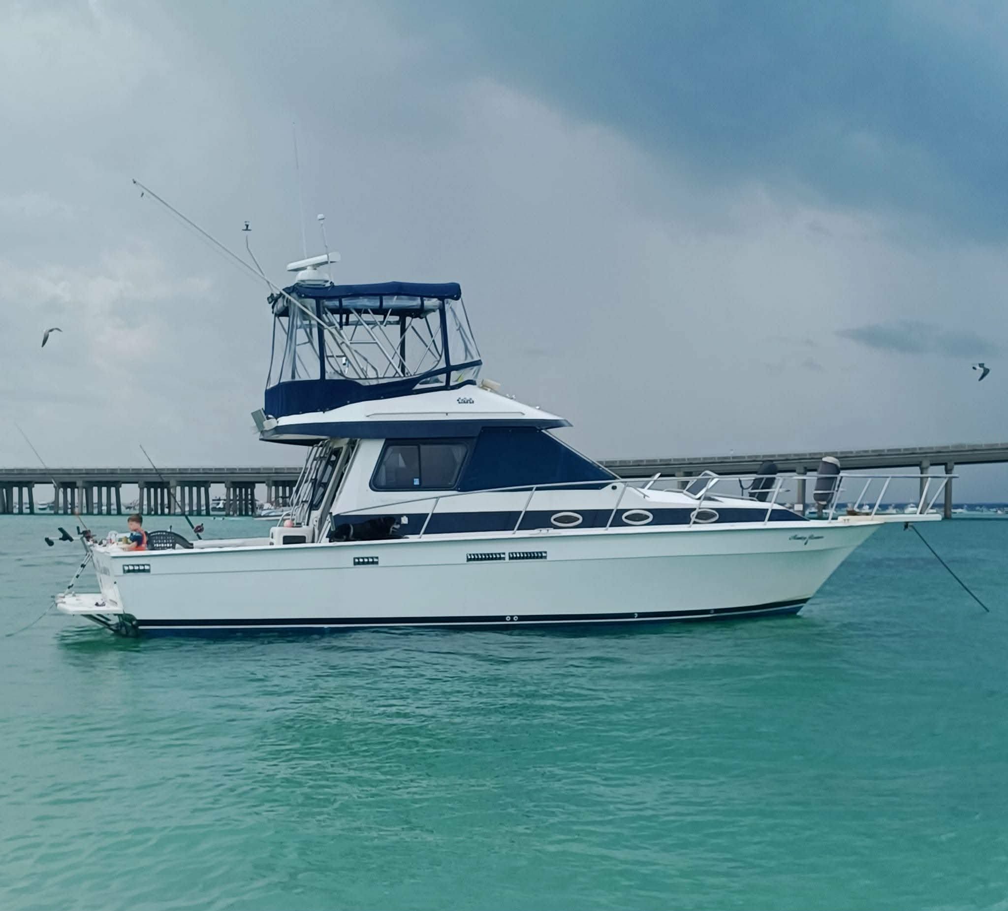 You’ll be fishing aboard a 42-foot Mediterranean sportfishing vessel designed for comfort and performance. The boat is equipped with modern navigation systems including GPS, along with outriggers, downriggers, and a spacious deck for up to 6 guests. It also features a private restroom, comfortable seating, and the gear needed to handle a variety of fishing techniques. With speed, stability, and the right setup for offshore and nearshore trips, Full Bend Charters gives you everything you need for a well-rounded day on the water.